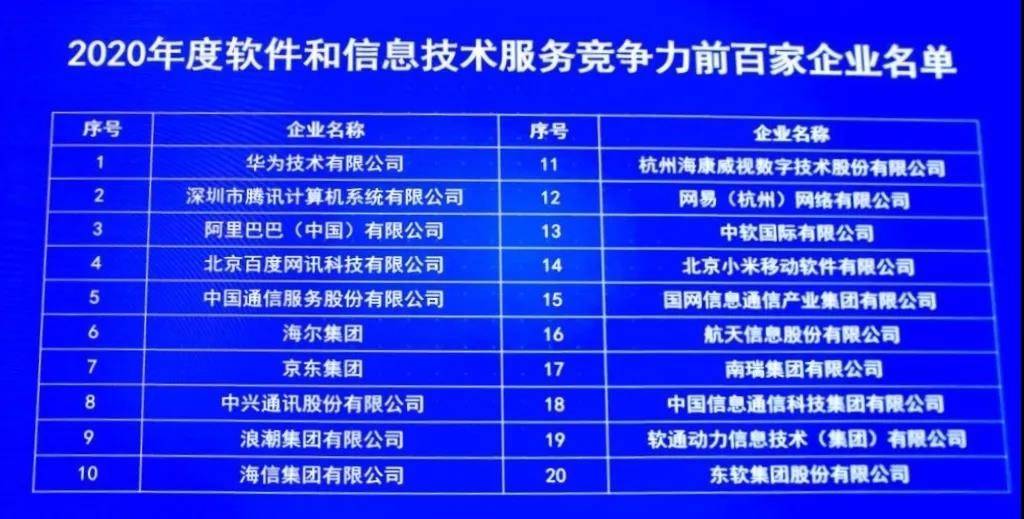 2020年度軟件和信息技術服務企業(yè)競爭力百強榜單揭曉,國網(wǎng)信通產(chǎn)業(yè)集團榮登第十五位