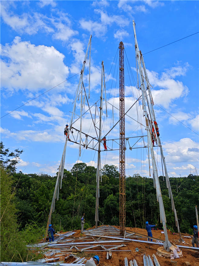 20余名施工隊員踩著泥濘,用繩索把塔材捆在背上,沿著陡峭山路一步步挪移。300米高差,3公里山路,最重的單件塔材超過200斤。現場工作負責人何習勇腳下一滑,膝蓋磕在石頭上,鮮血浸透工褲。他抹把汗笑道:“和鐵塔打這么些年的交道,第一次被它‘咬’了一口。”