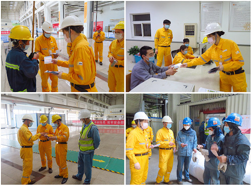 活動中每到一處,王邱艷、杜長明等一行分別對習近平總書記關于安全生產重要論述進行宣講,對安全生產五道防線、隱患排查工作進行相關宣貫,同時對生產現場防疫工作、人員佩戴口罩情況進行提醒和檢查,本次活動還對集控、煤場、食堂等處急救藥箱、人員體溫、血壓測量情況進行了抽查。