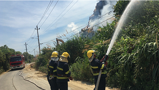 中國電力網訊 7月23日,華潤溫州電廠外3公里的北嶺山上濃煙滾滾。10時32分,電廠消防隊接到地方的增援求救后,火速組織一輛消防車、五名消防隊員奔赴現場救援。