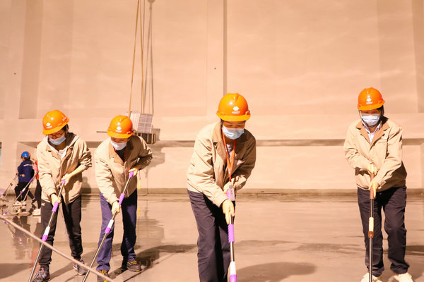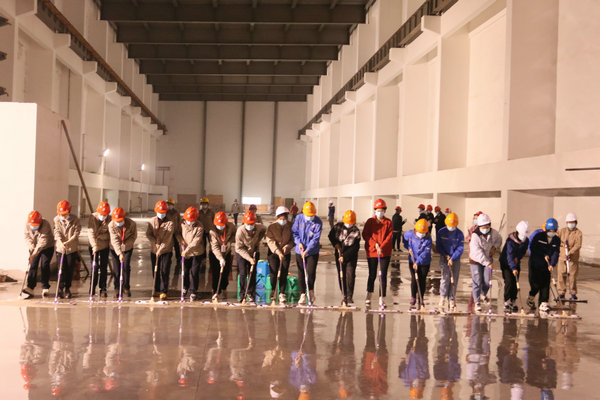 在到達(dá)位于汽機(jī)房17米平臺的GIS室后,女職工明確分工,協(xié)同配合,裝水、噴水、清掃、沖水、拖地……分區(qū)域、分小組地對GIS室地面進(jìn)行清潔。當(dāng)大家看著地面從塵土漫漫逐漸變成干凈整潔的地面,干凈的面龐已是塵土夾雜著汗水,臉上的笑容依舊如初,勞動(dòng)的成就感,為工程建設(shè)作出力所能及貢獻(xiàn)的自豪感充溢著大家的內(nèi)心。經(jīng)過兩個(gè)多小時(shí)的勞動(dòng),順利完成了600平方米GIS室地面的清潔。