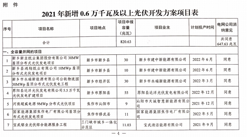 11月5日,河南省發改委下發《關于下達 2021年新增0.6萬千瓦及以上光伏項目開發方案的通知》。文件指出,對于不新增用地、利用固定建筑物及其附屬場所建設的光伏項目,不限申報規模!